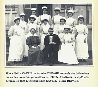 | 1909 tot 1910 | Tijdens deze periode heeft de verpleegschool 23 leerlingen. De Stad Brussel, het ziekenhuis van Sint-Gillis en het ziekenhuis van Jumet doen alle een beroep op de diensten van de verpleegsters die zijn opgeleid door Edith Cavell.Edith Cavell en Antoine Depage 1910 |